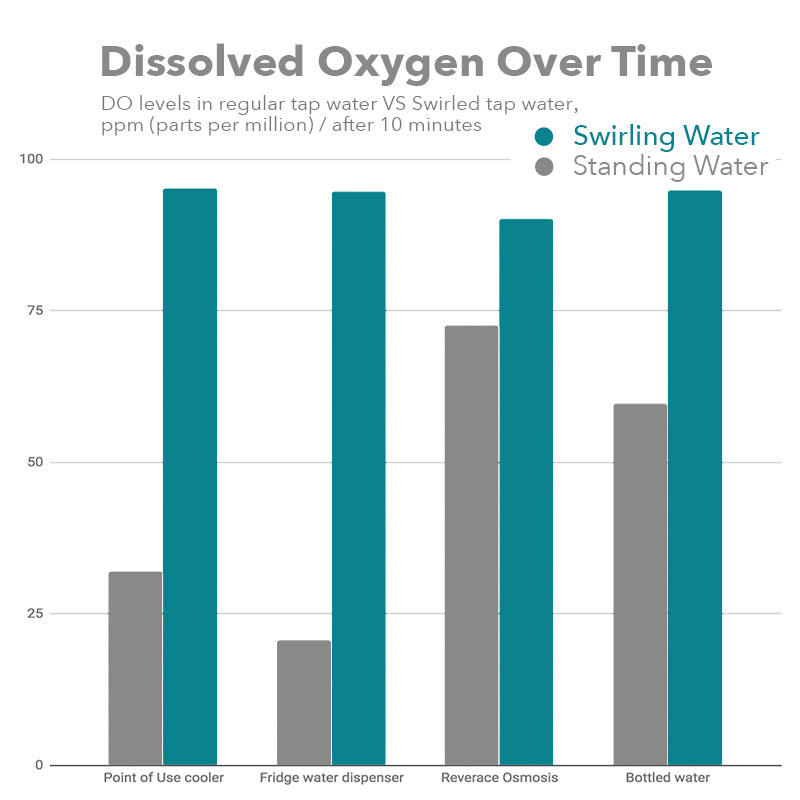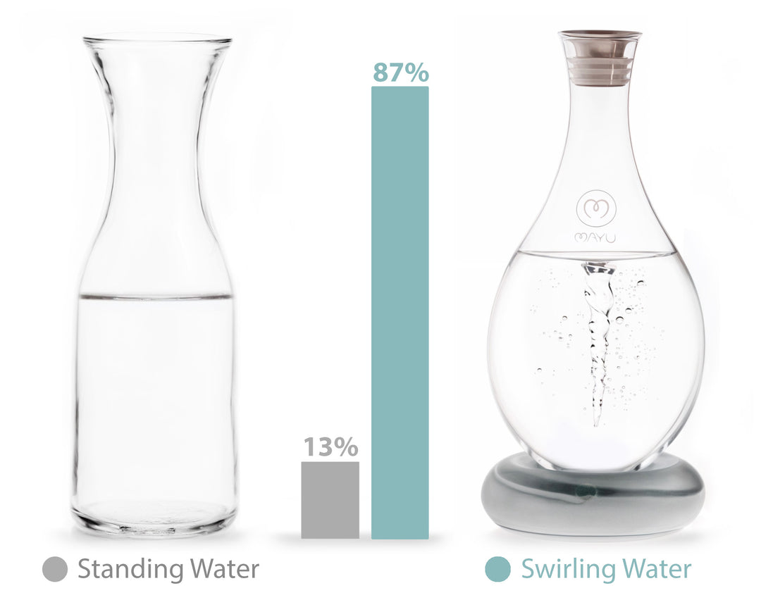 Durch strenge Tests mit verschiedenen Wasserquellen wurde nachgewiesen, dass das MAYU Swirl-System den Sauerstoffgehalt signifikant erhöht. Das Ergebnis: Frisches, sauerstoffreiches Wasser, das nicht nur besser schmeckt, sondern auch die Hydration Ihres Körpers optimiert.